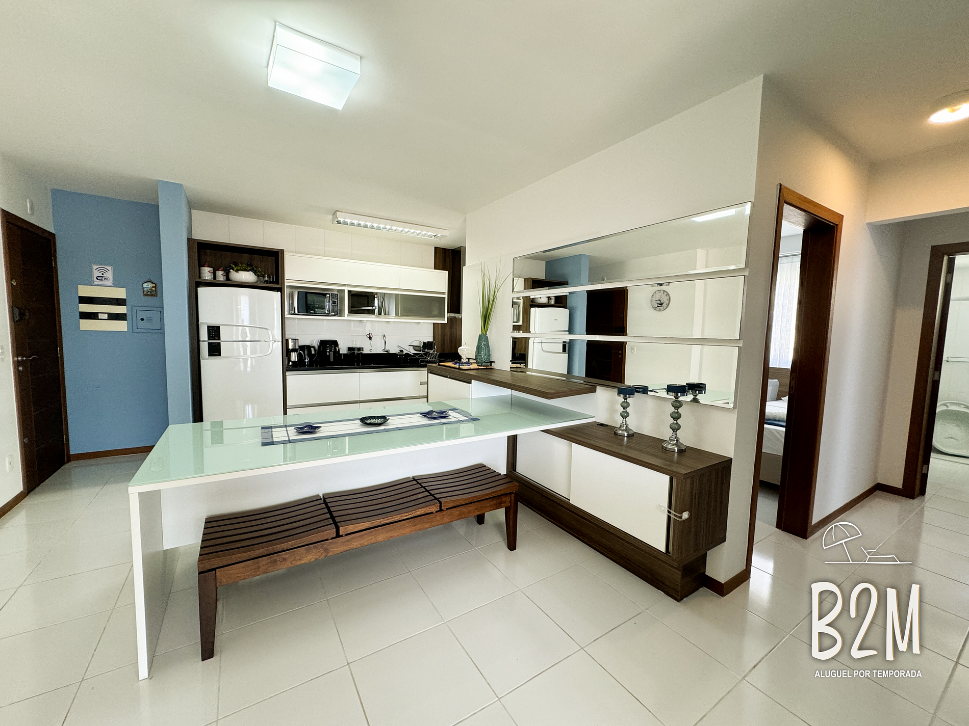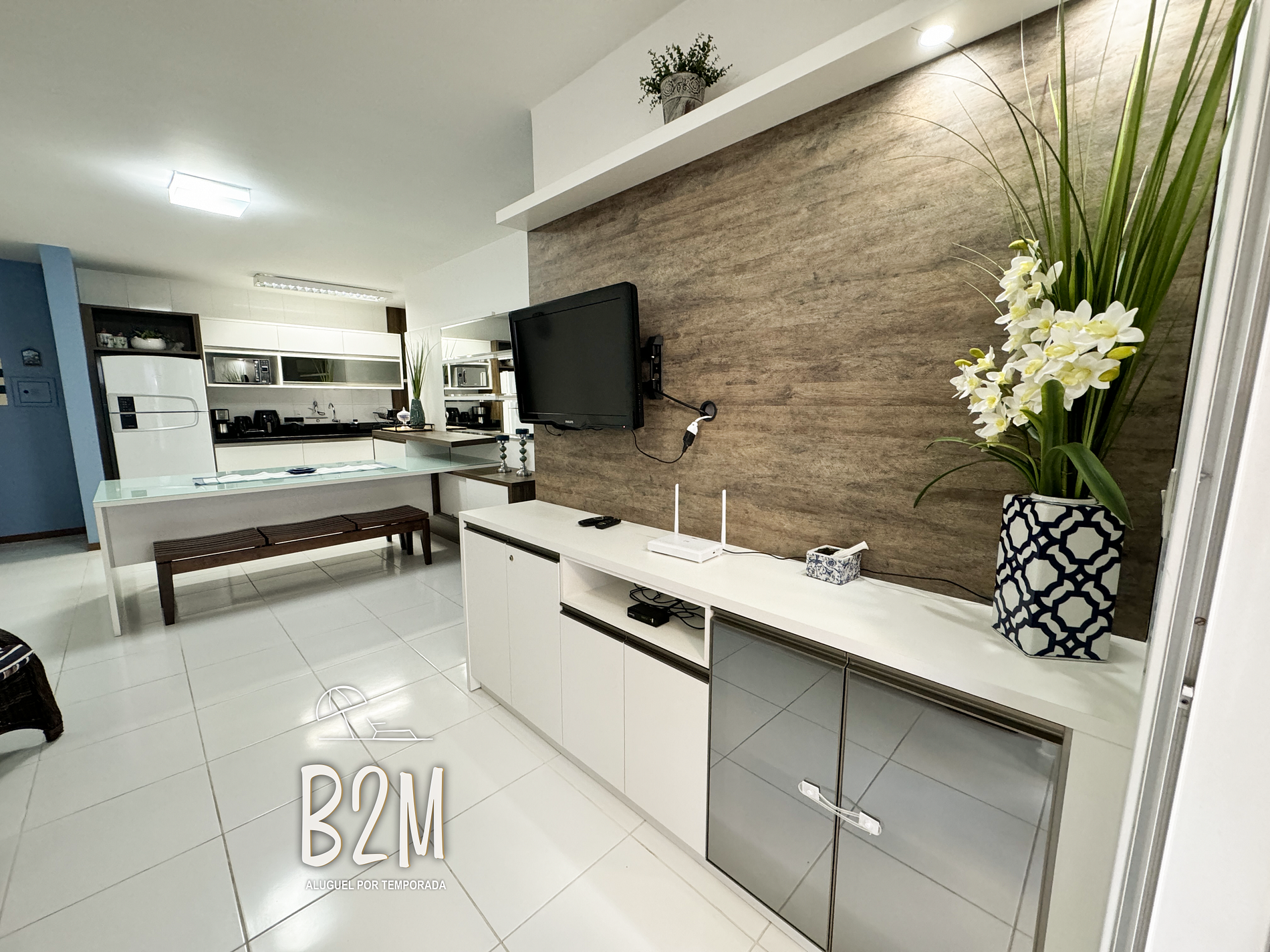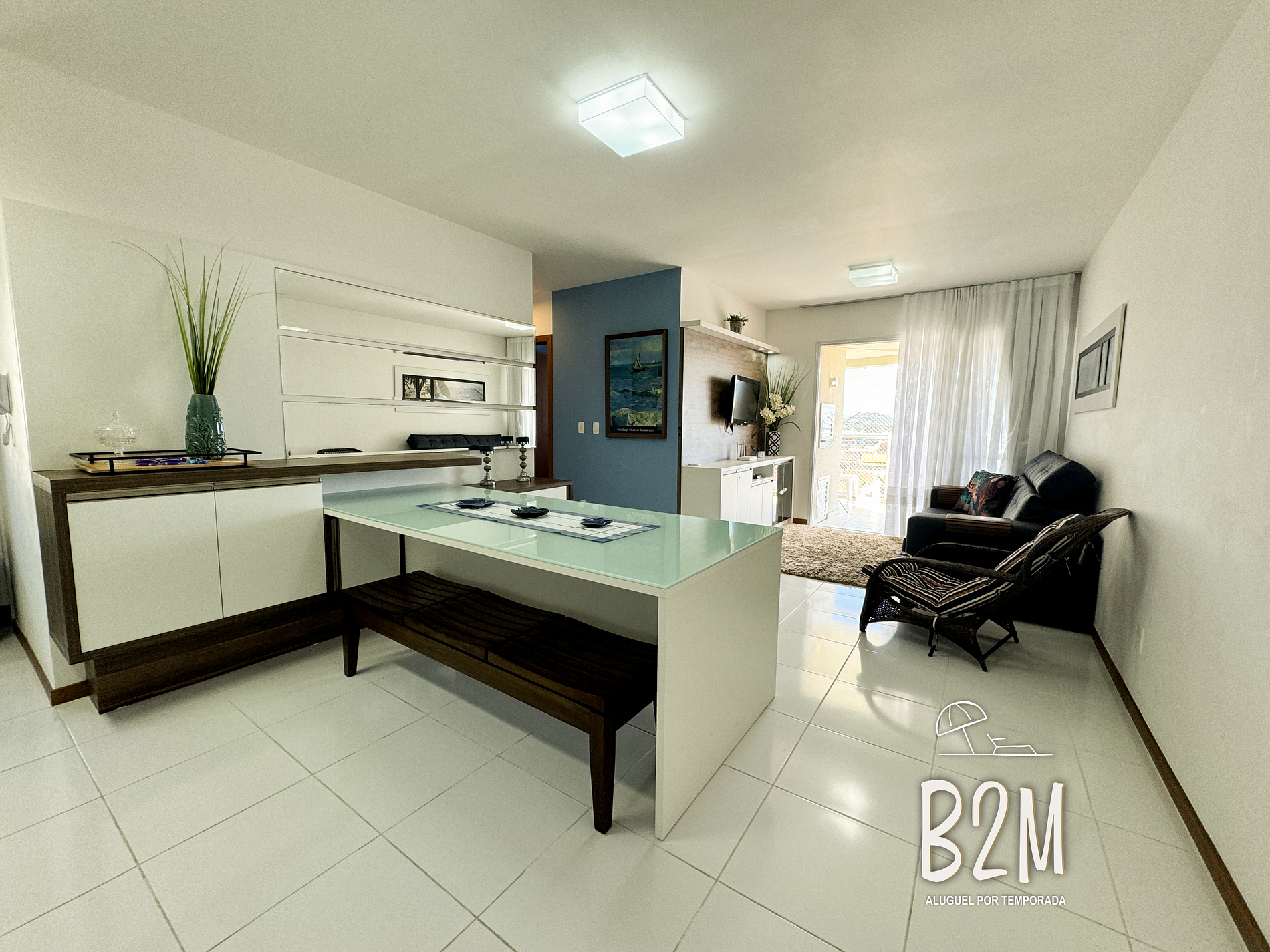 sofá retrátil, poltrona, smart tv, internet wifi, mesa de jantar para 6 pessoas