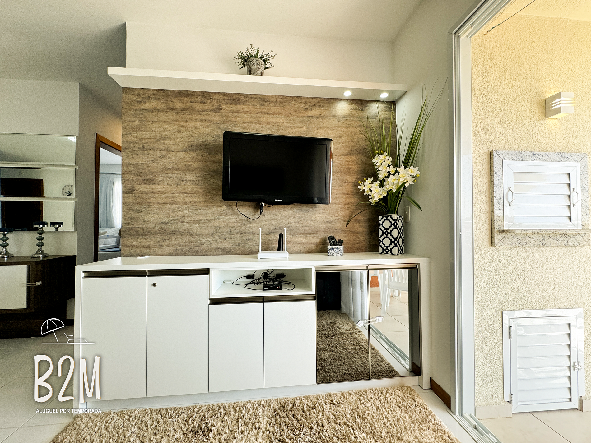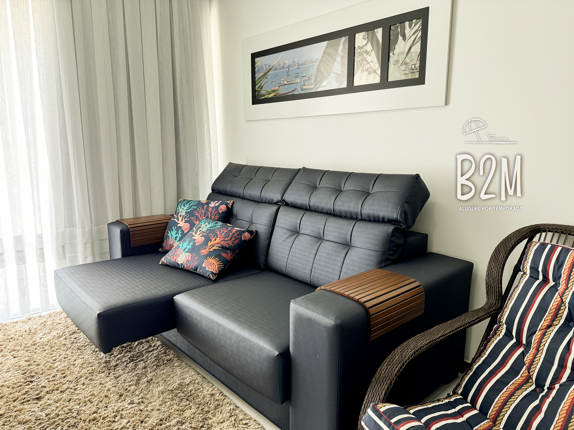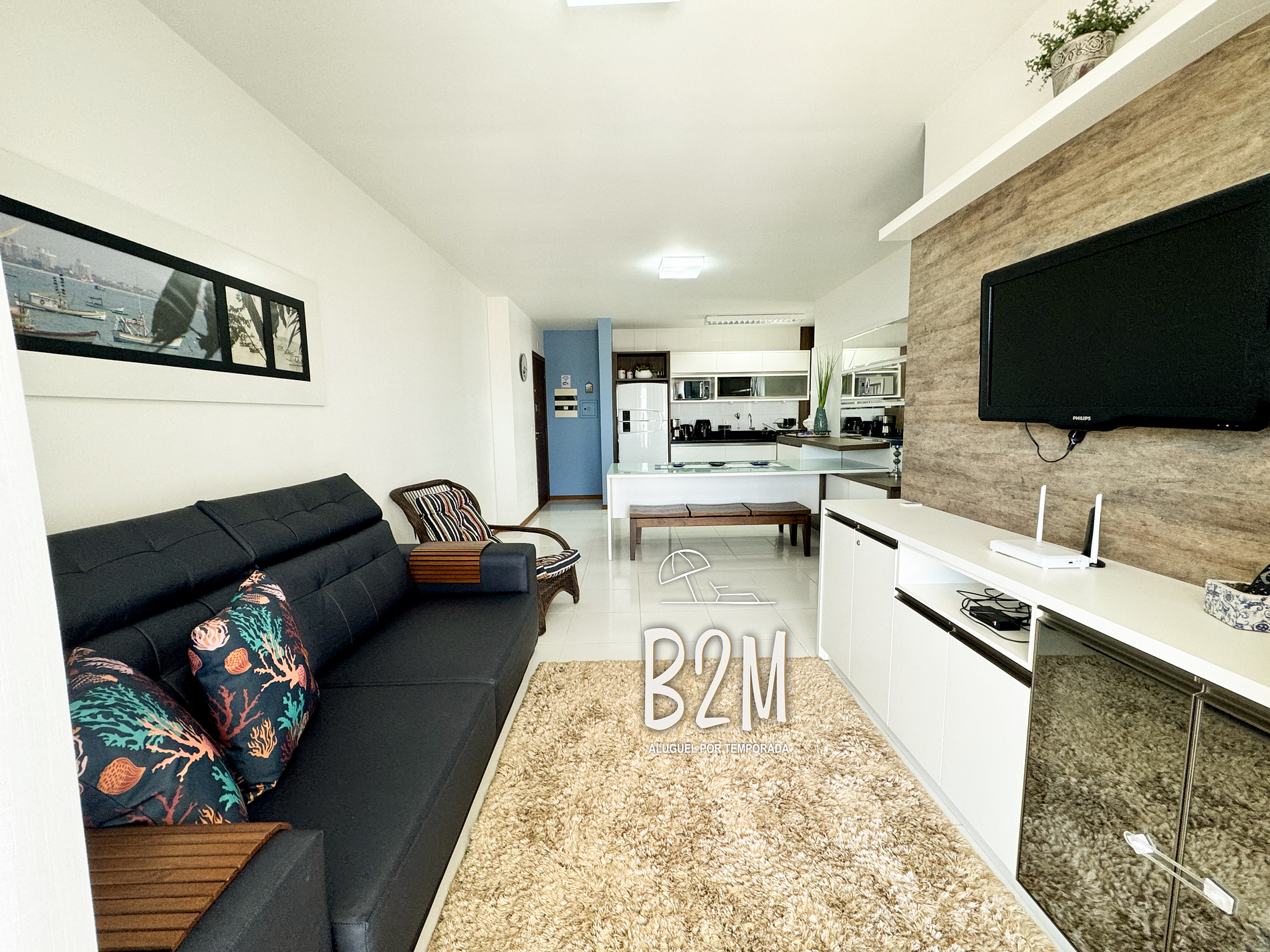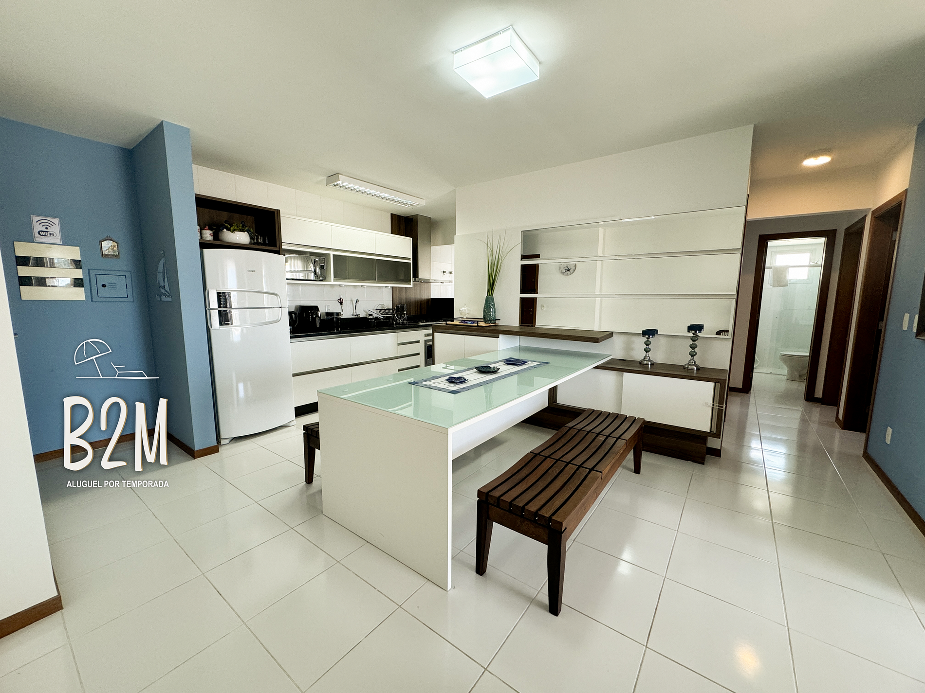 sofá retrátil, poltrona, smart tv, internet wifi, mesa de jantar para 6 pessoas