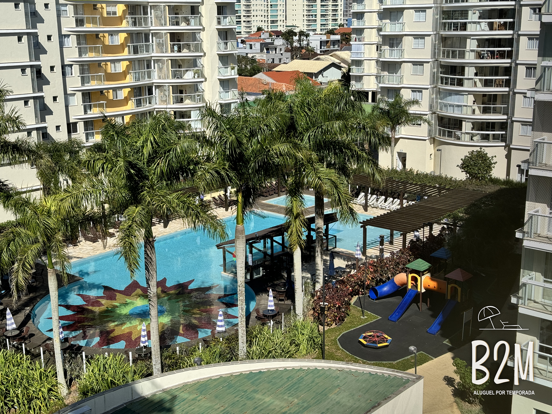 3 piscinas, quadra Poliesportiva, quadra de areia, campo de futebol, espaço kids, cancha de bocha, 2 playgrounds ao ar livre, academia, salão de jogos