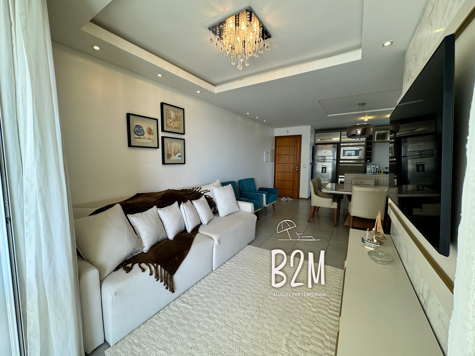 sofá, 2 poltronas, televisão, internet wifi, mesa de jantar para 6 pessoas, decoração elegante