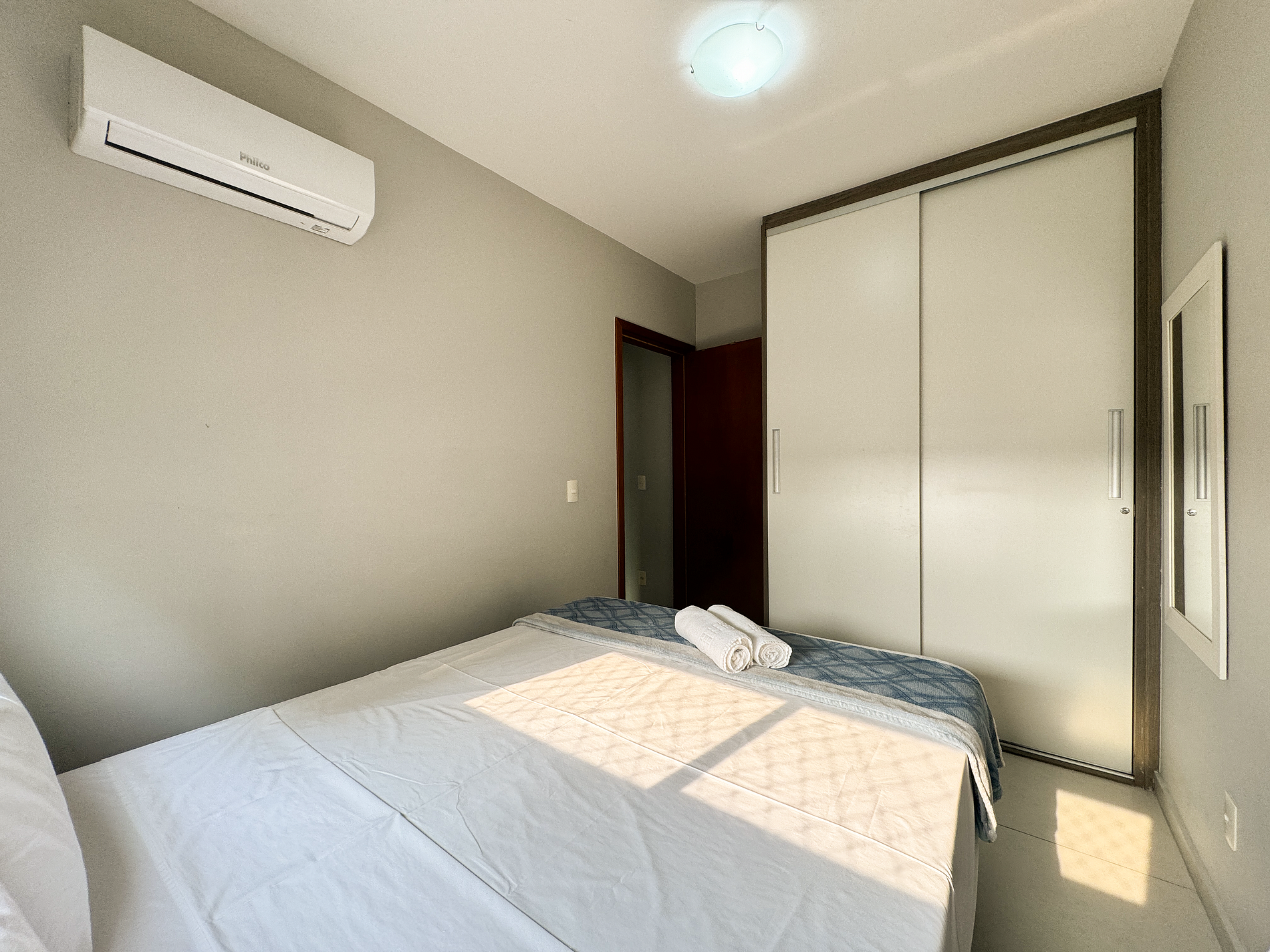 cama de casal, ar condicionado, armário