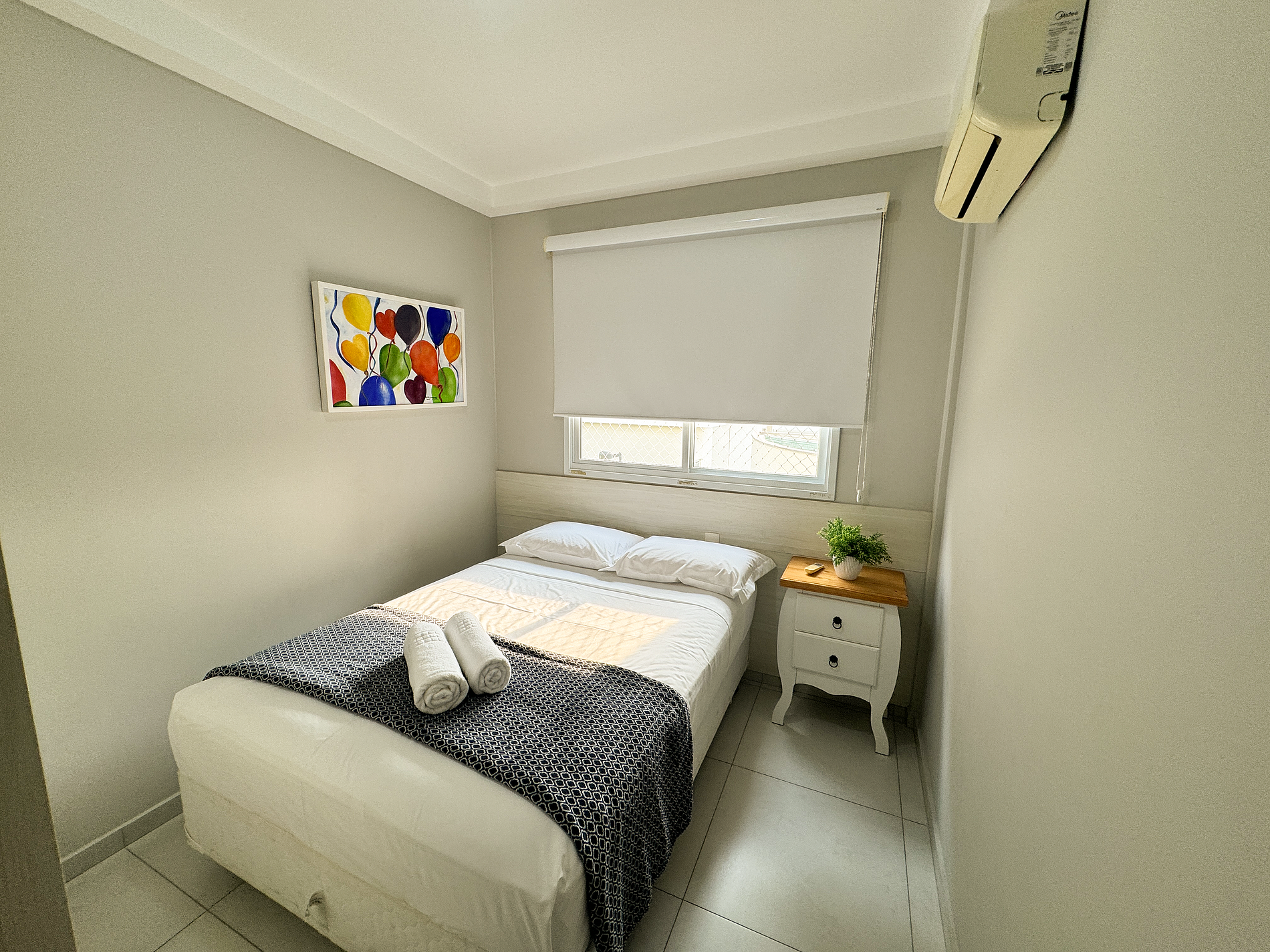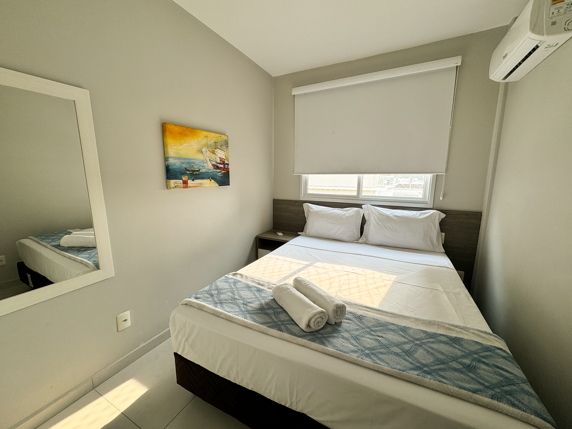 cama de casal, ar condicionado, cômoda