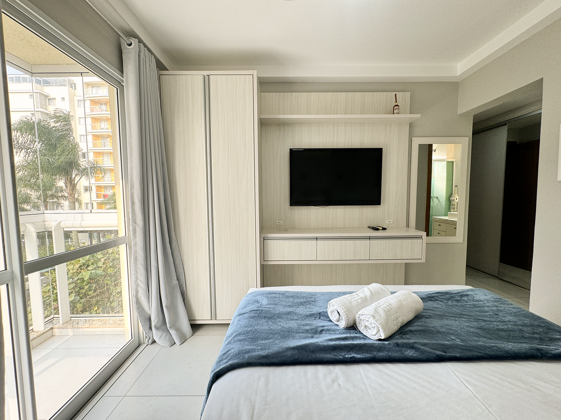 Fornecemos a roupa de cama e toalhas de banho de hotelaria para seu maior conforto.