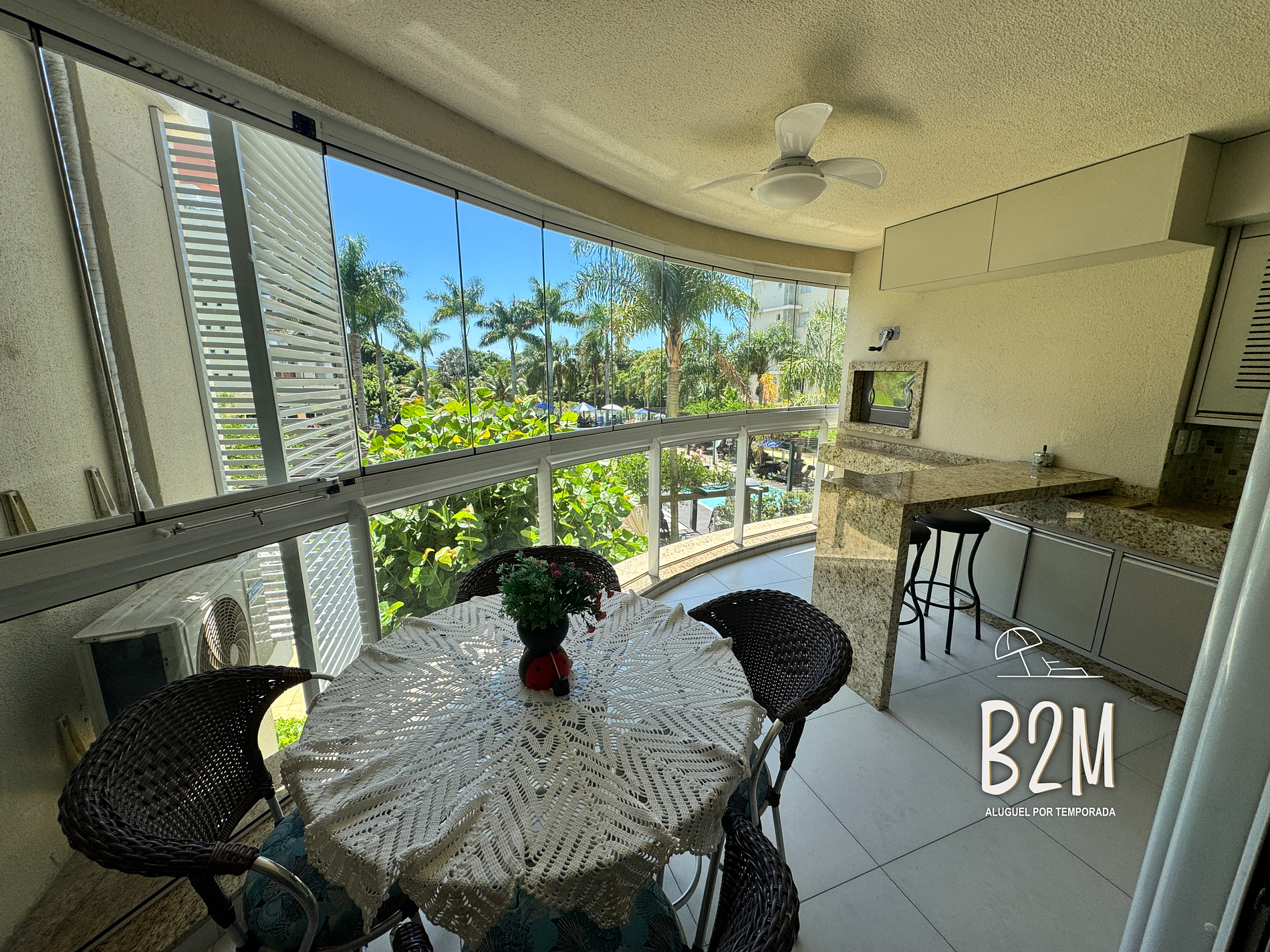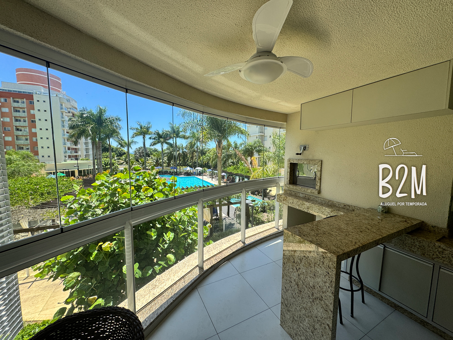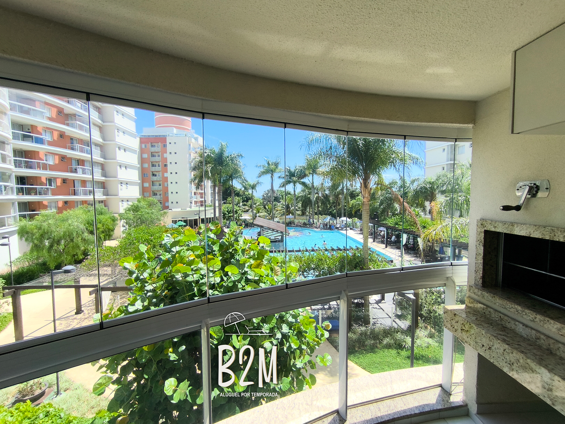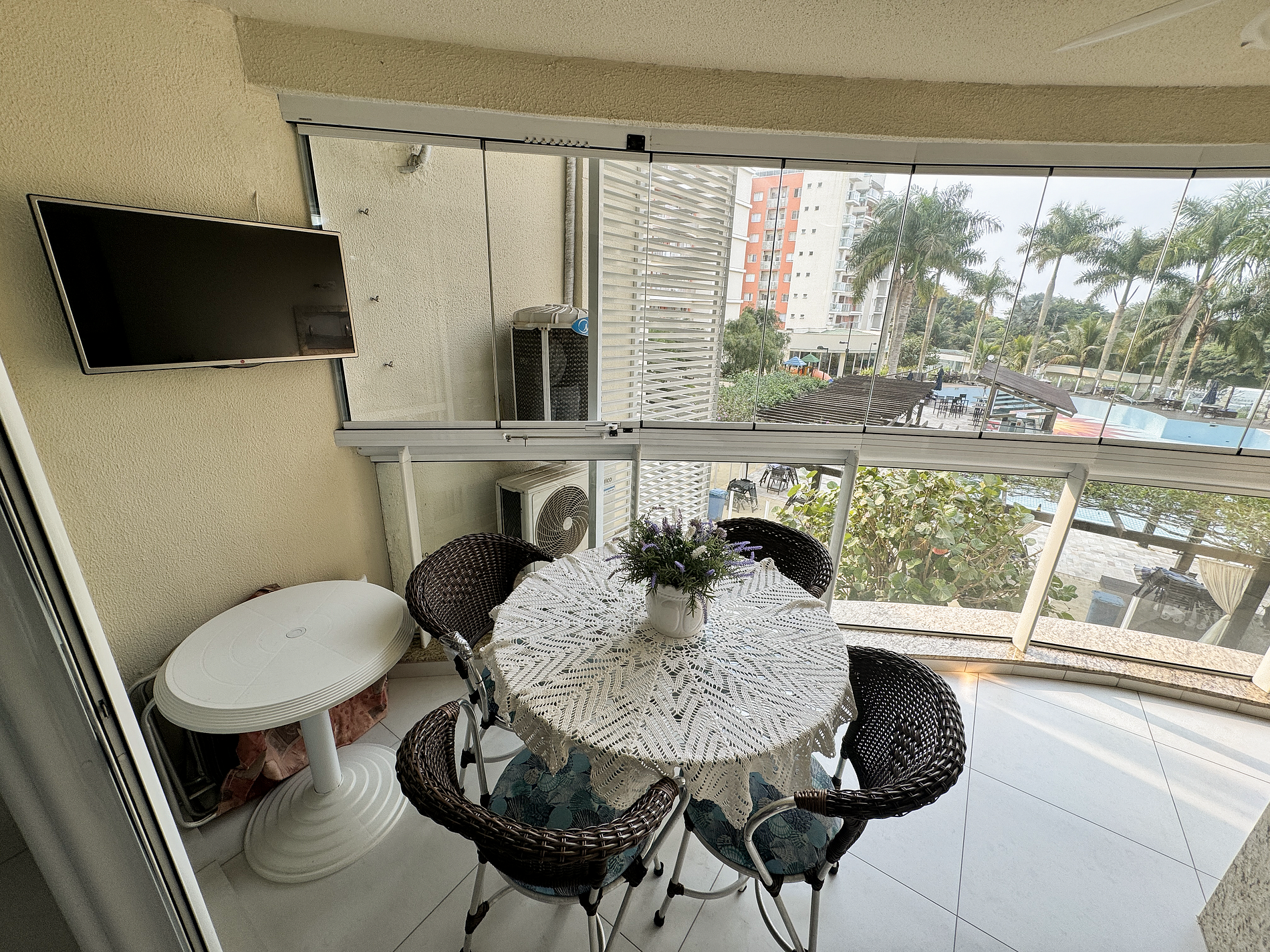 - varanda com vista privilegiada da piscina