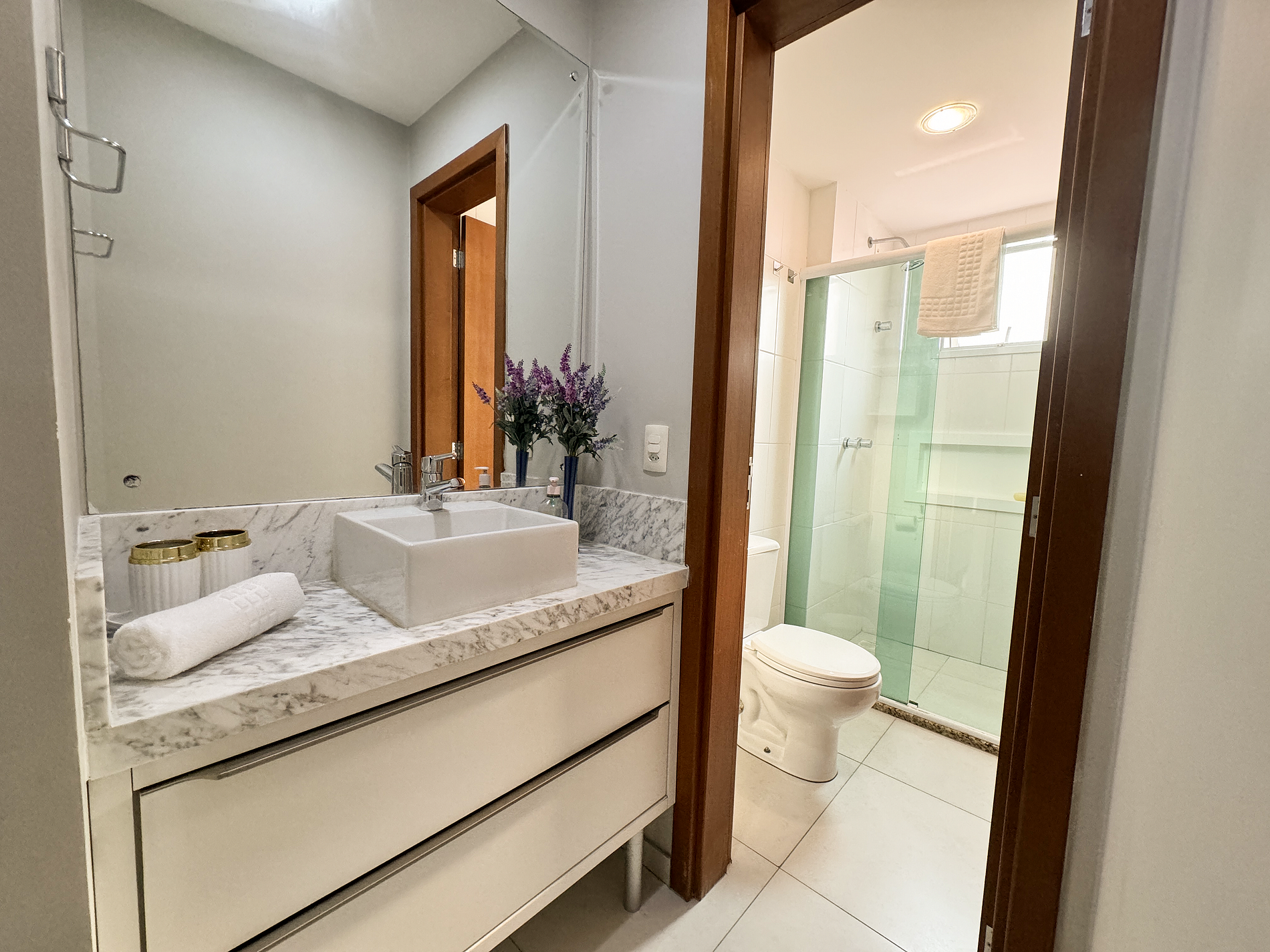 Fornecemos a roupa de cama e toalhas de banho de hotelaria para seu maior conforto.