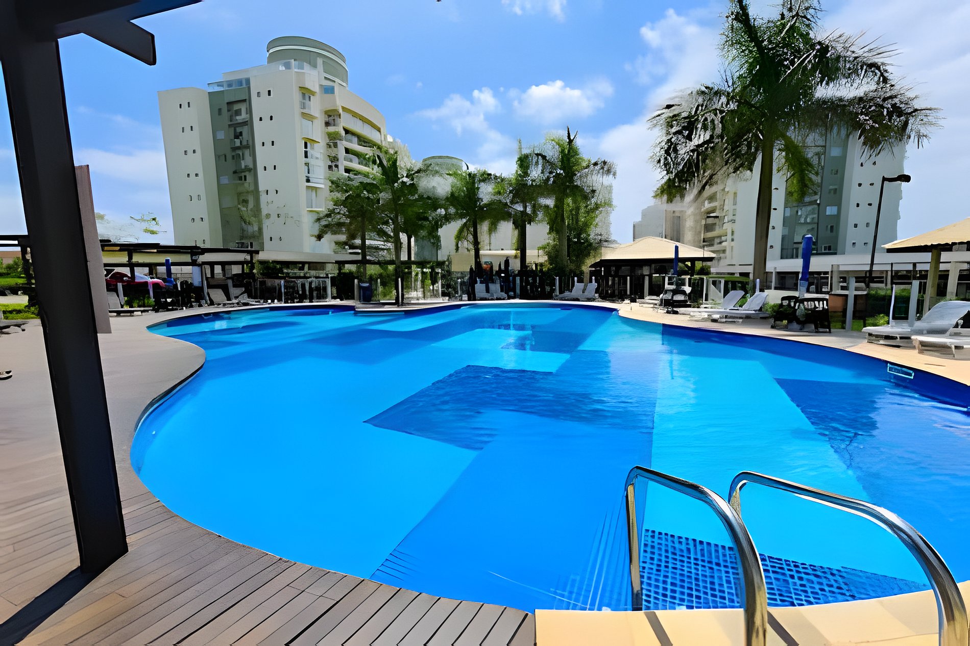 3 piscinas, quadra Poliesportiva, quadra de areia, campo de futebol, espaço kids, cancha de bocha, 2 playgrounds ao ar livre, academia, salão de jogos