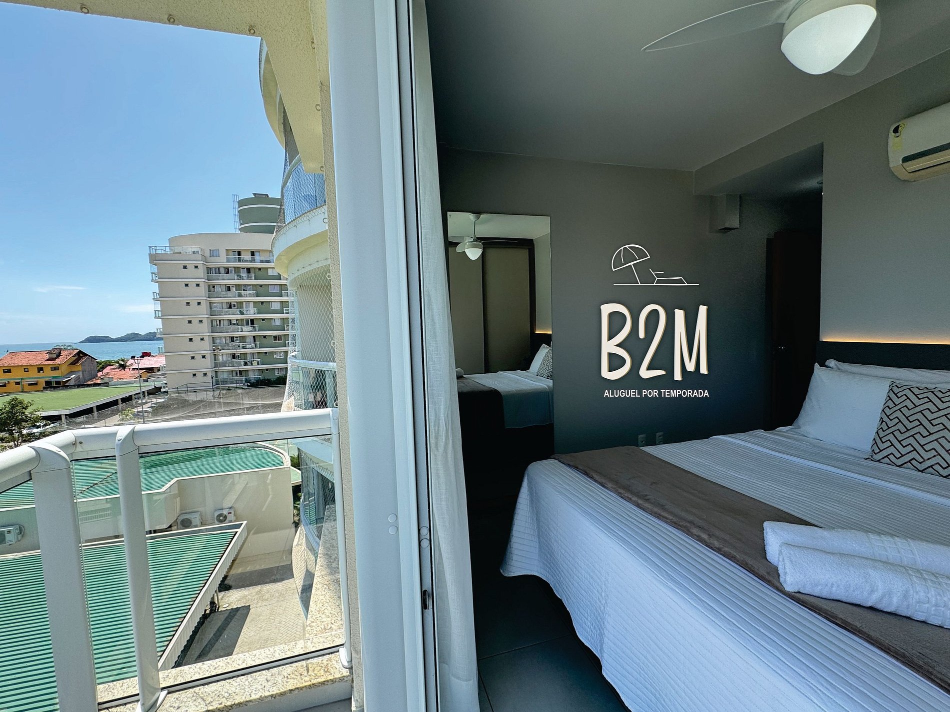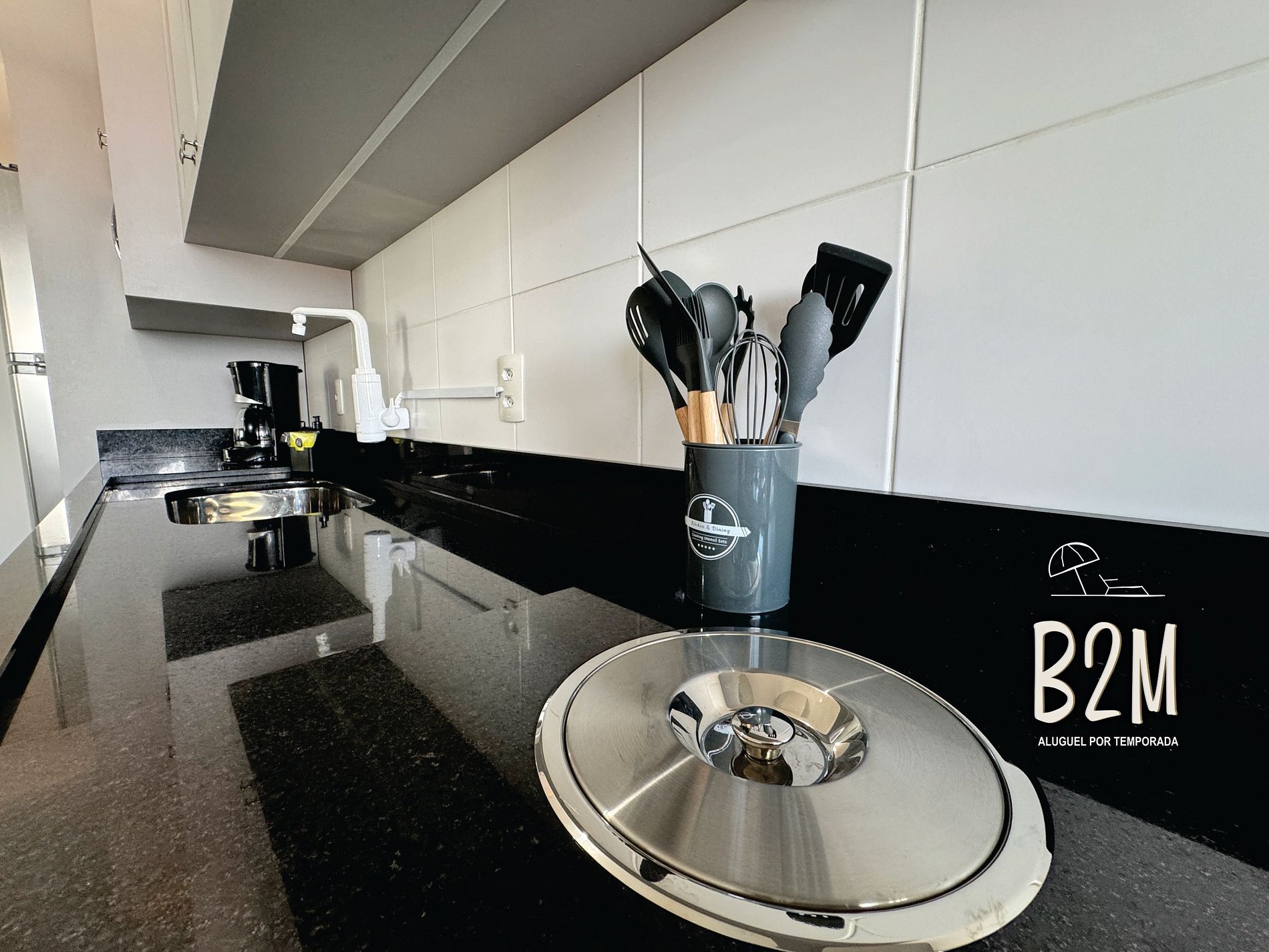 vista do mar, churrasqueira, pia com bancada, mesa com 4 cadeiras
