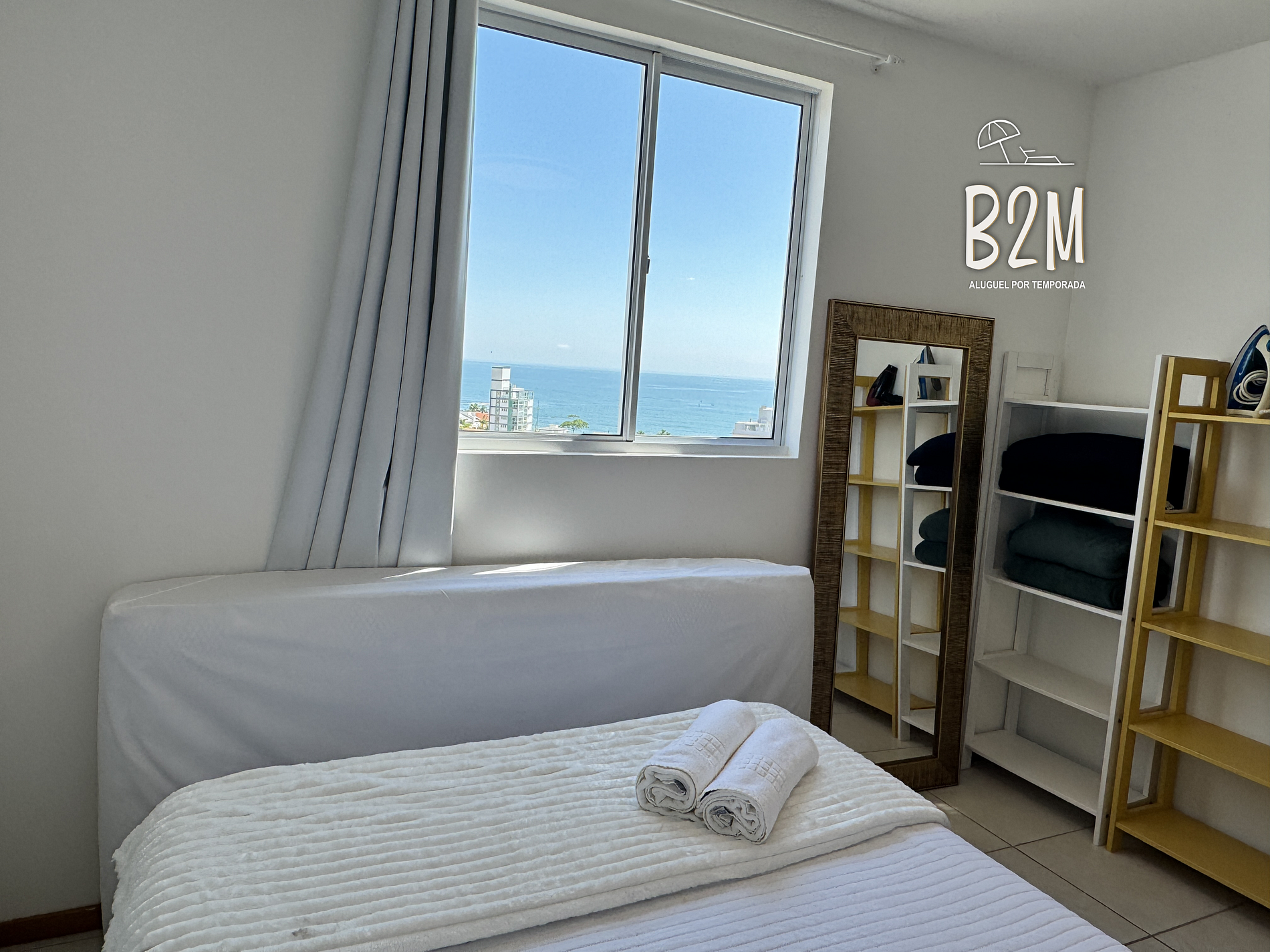 janela vista mar, camas de casal, ar condicionado, colchão de solteiro extra, ar condicionado, armário, cortina com blackout, roupa de cama e tolha em algodão