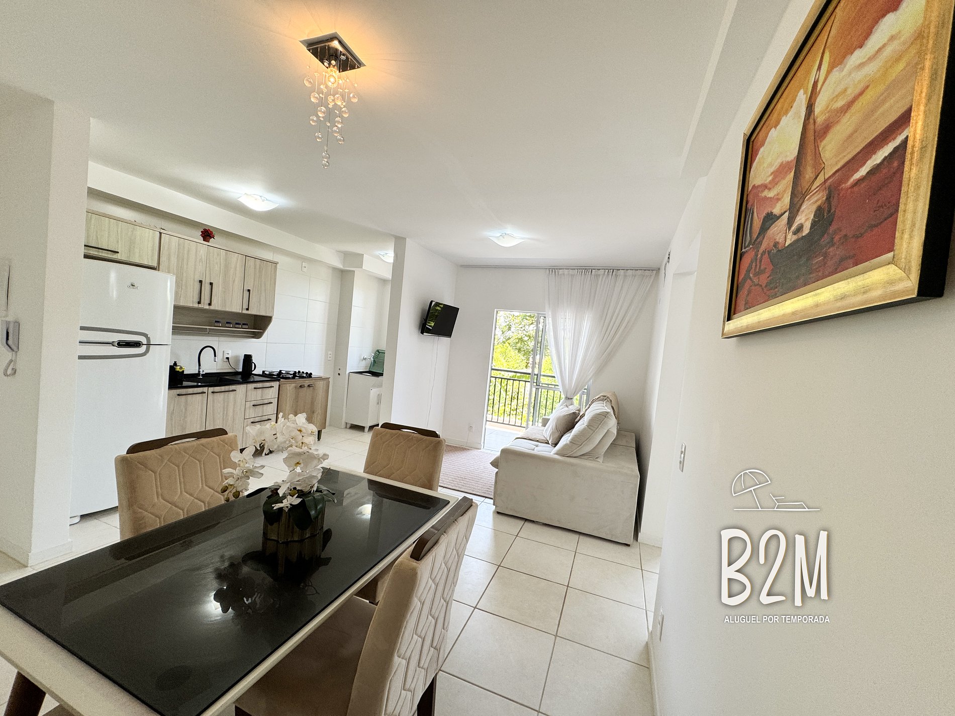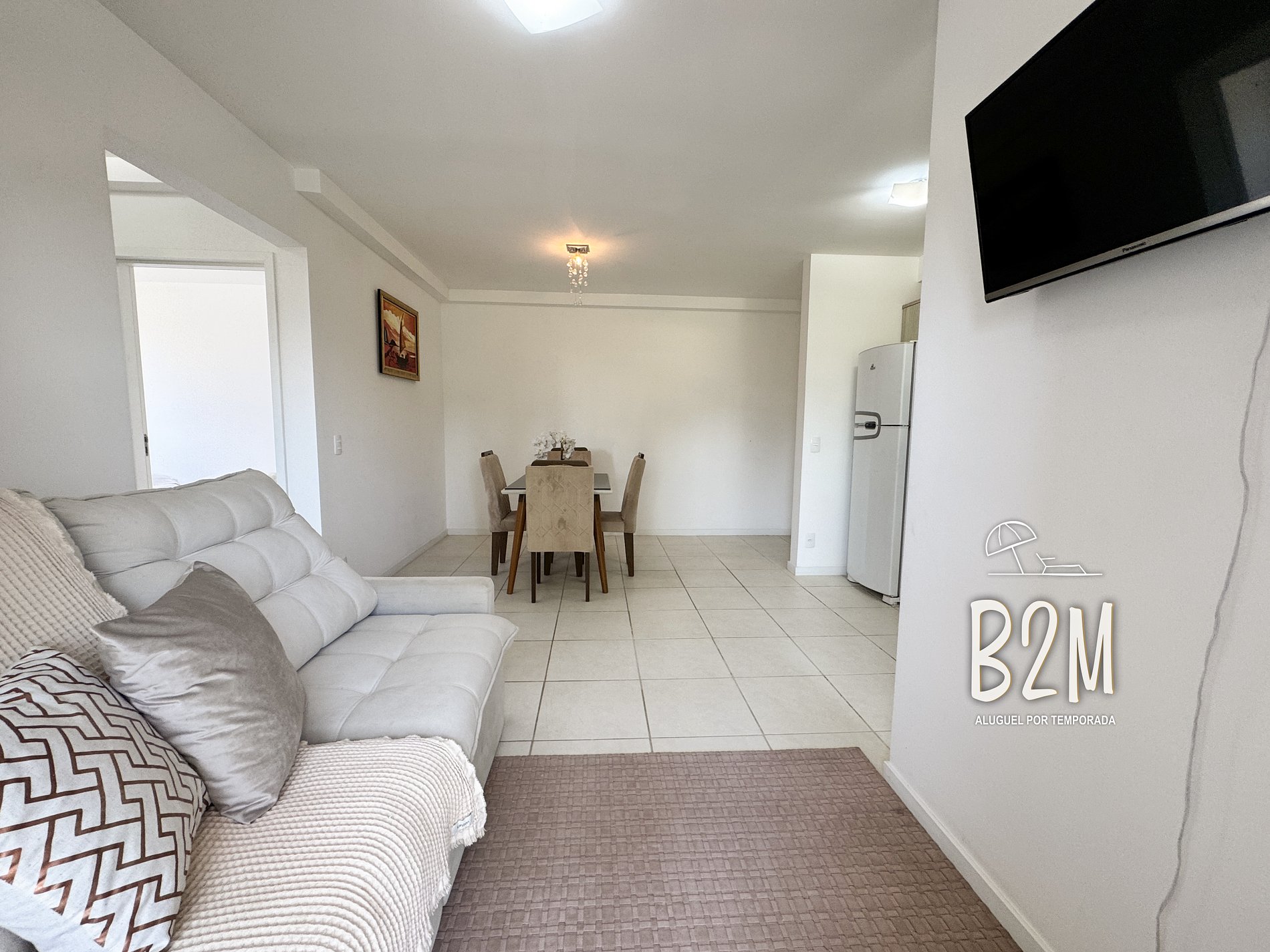 sofá, tv, internet, mesa de jantar para 4 pessoas