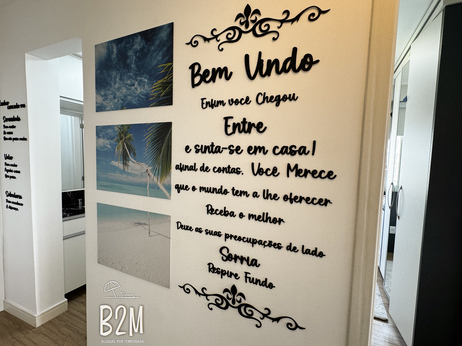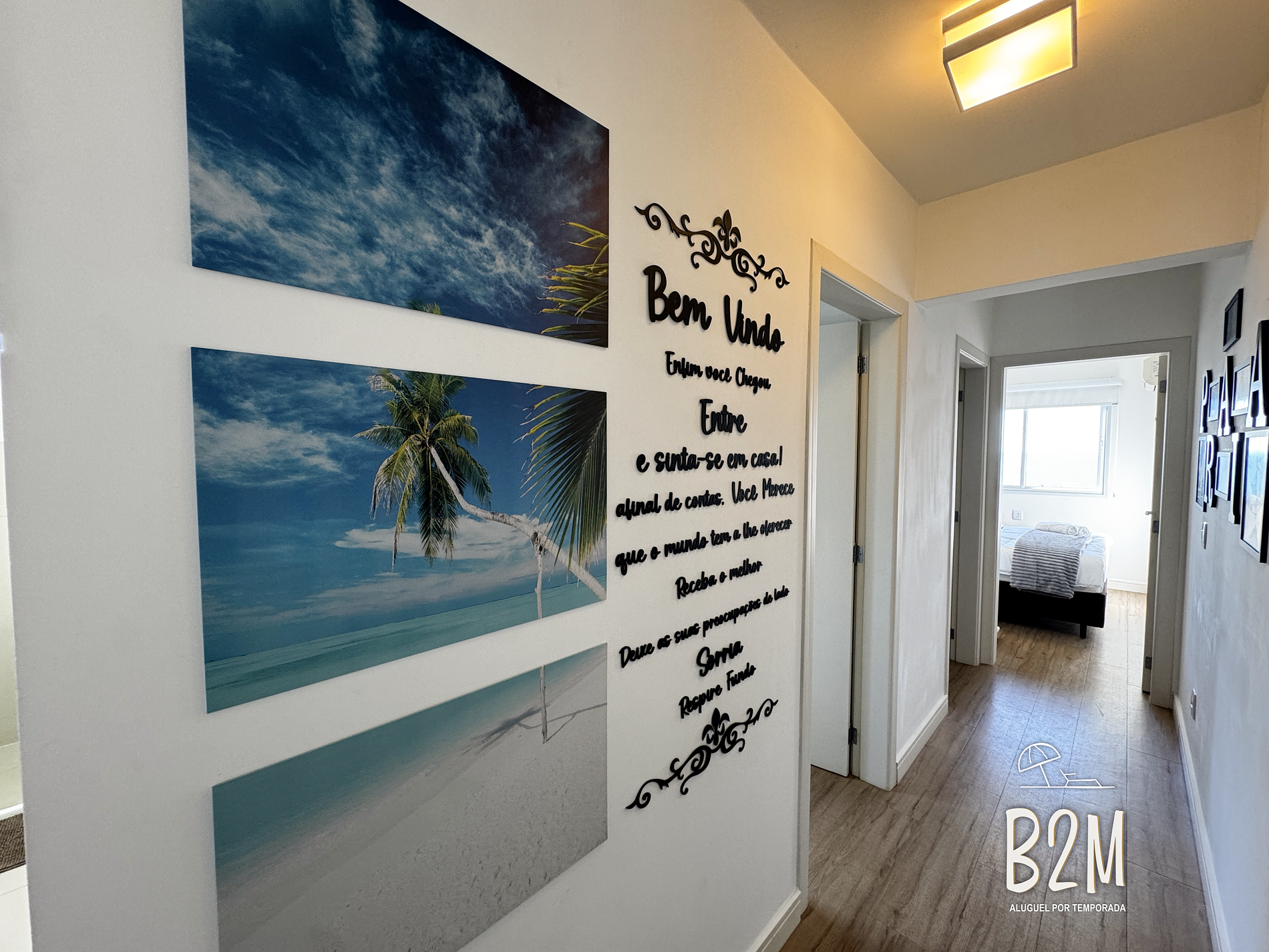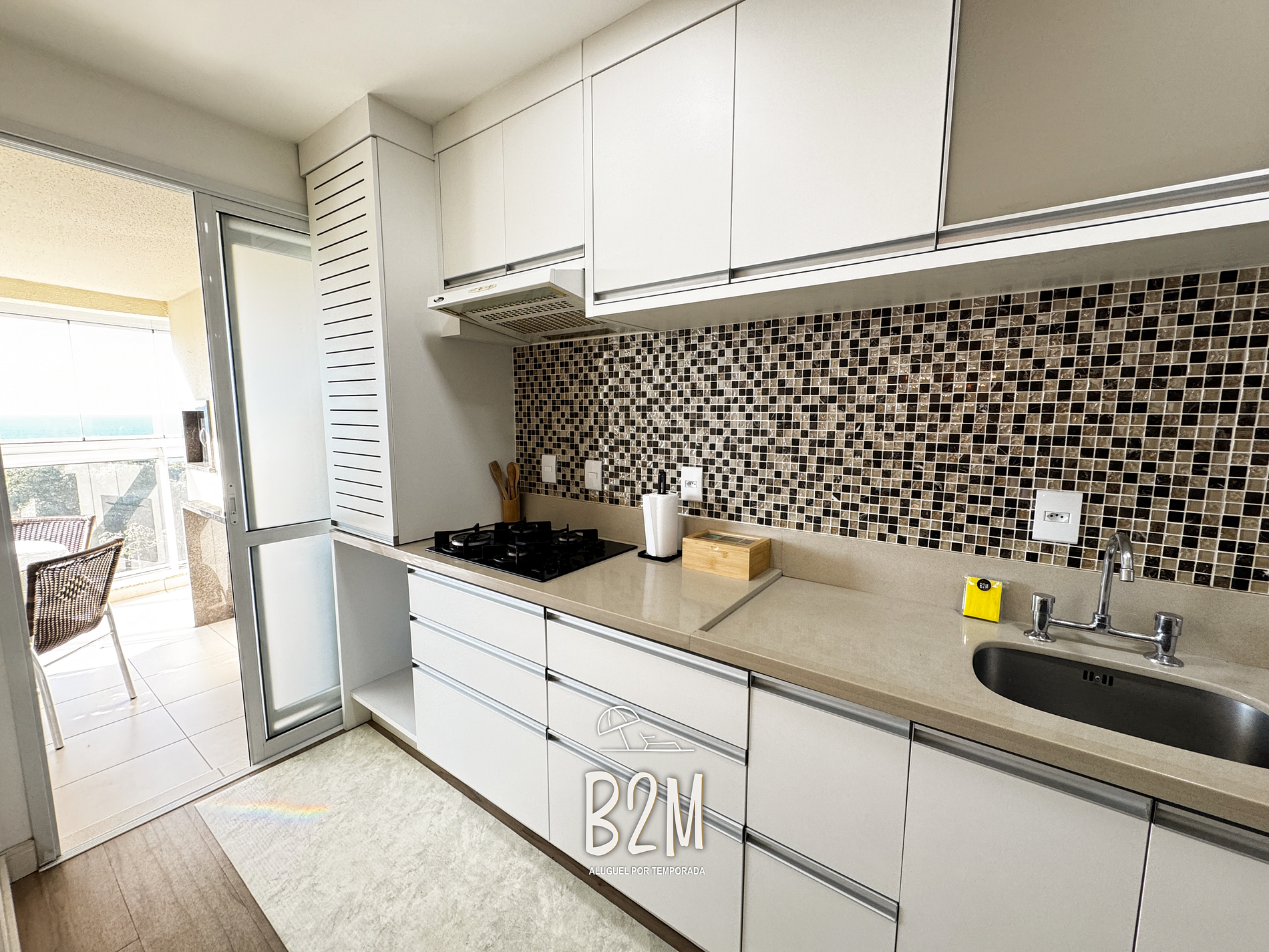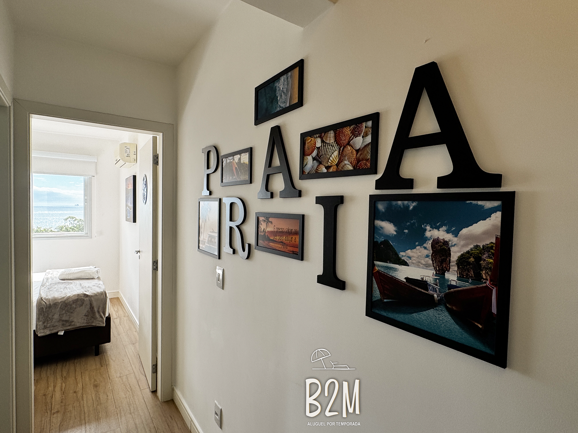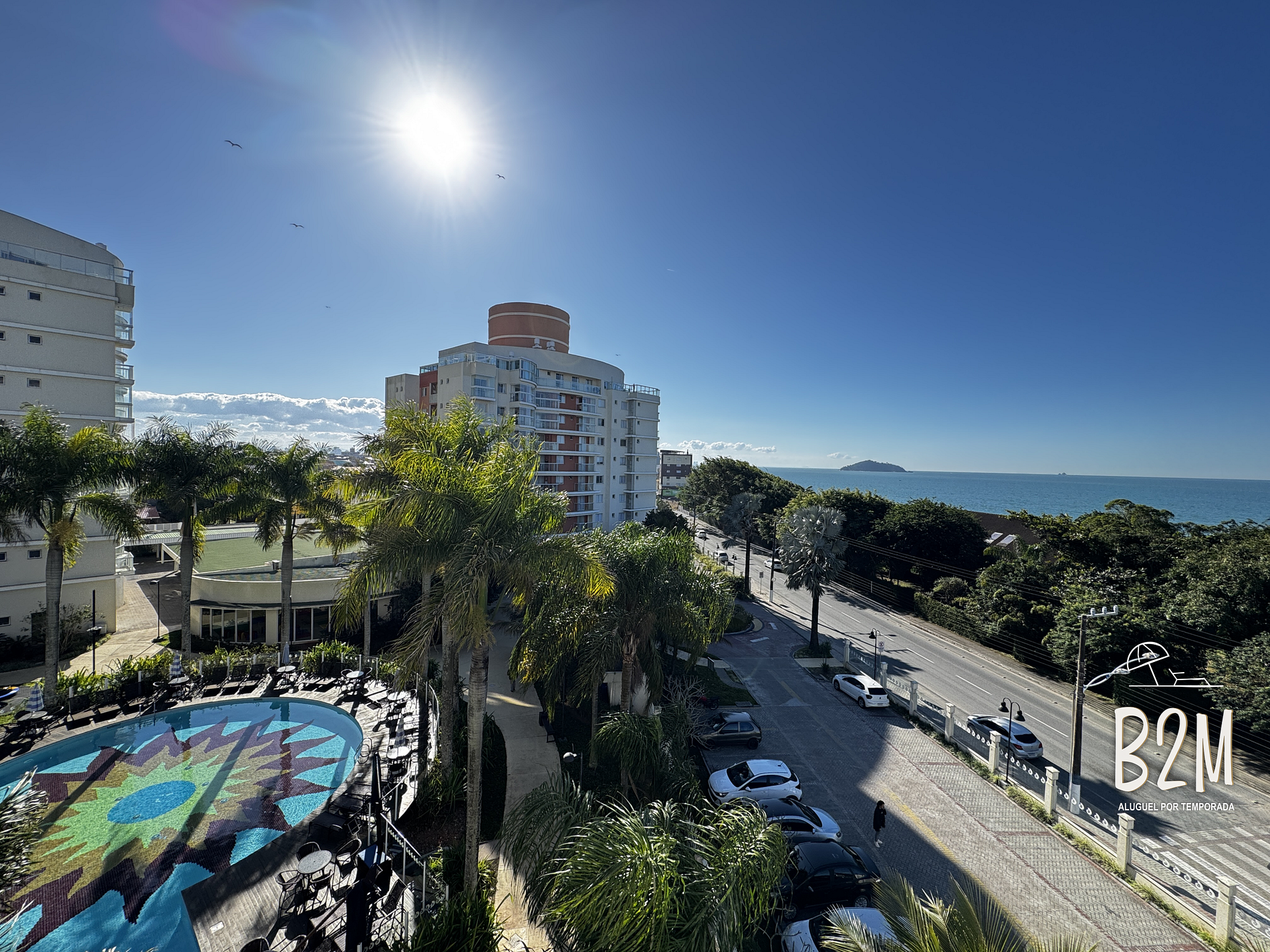 O apartamento possui varanda com churrasqueira e vista para o mar.