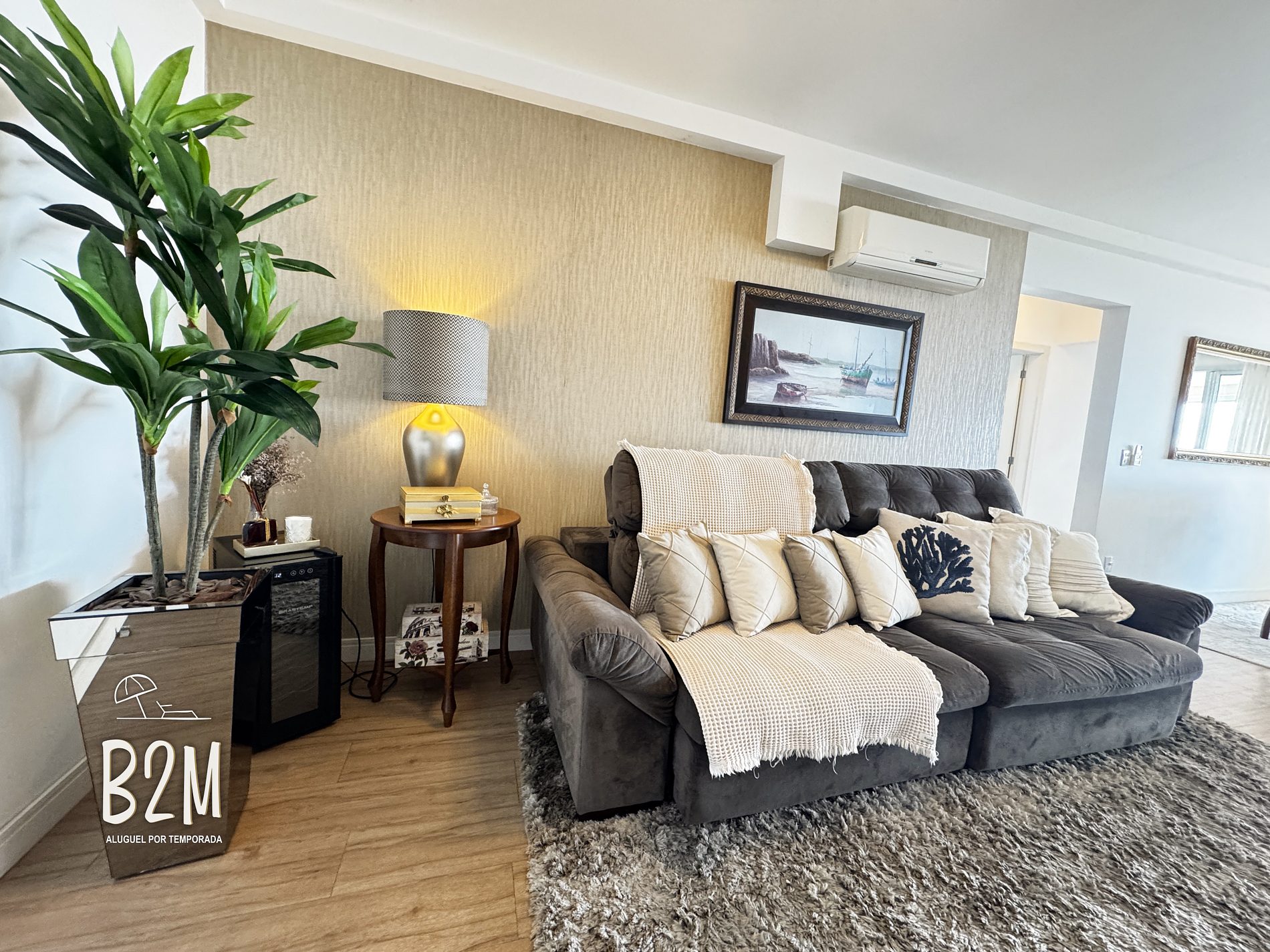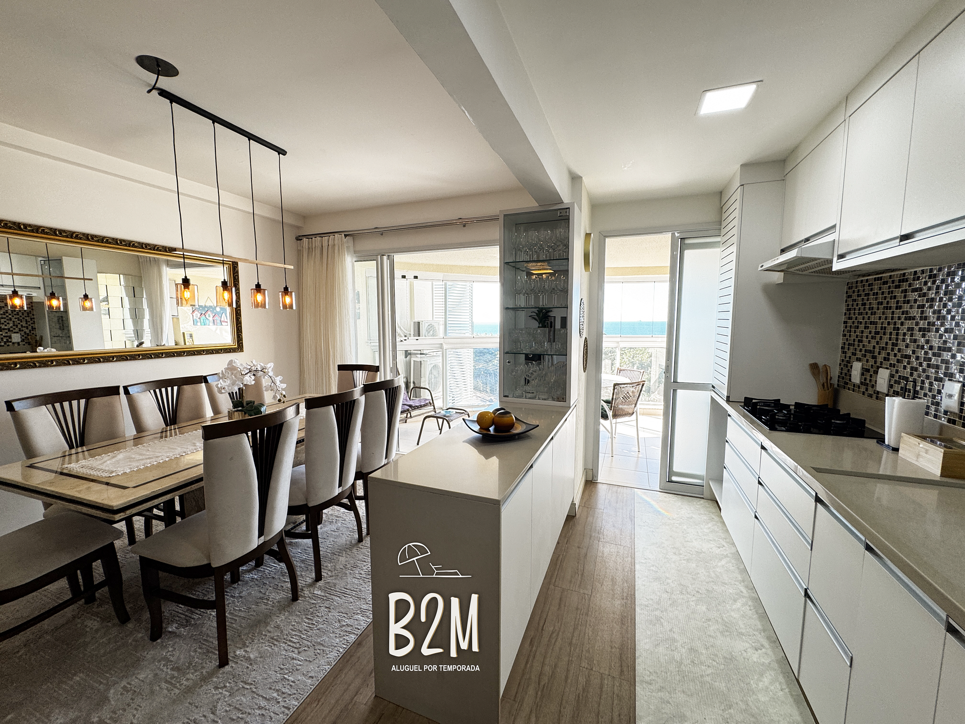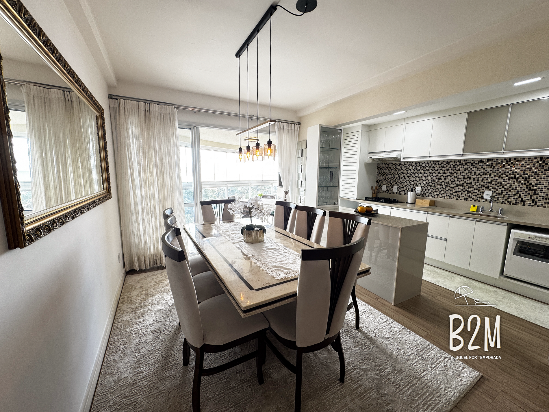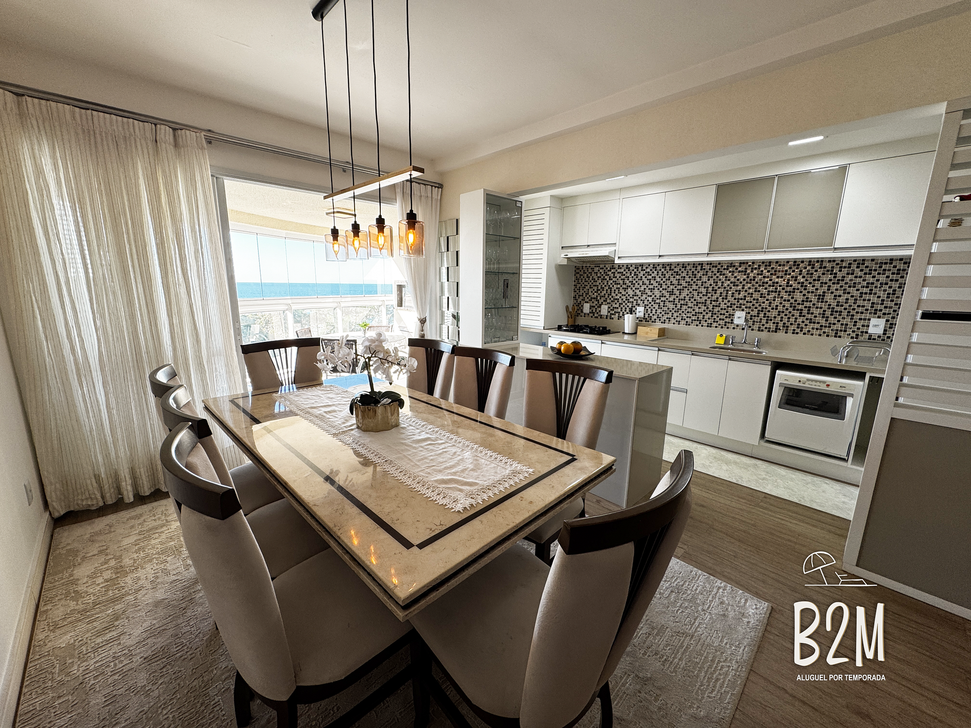 sofá retrátil, smart tv, ar condicionado, adega, internet wifi, mesa de jantar para 8 pessoas