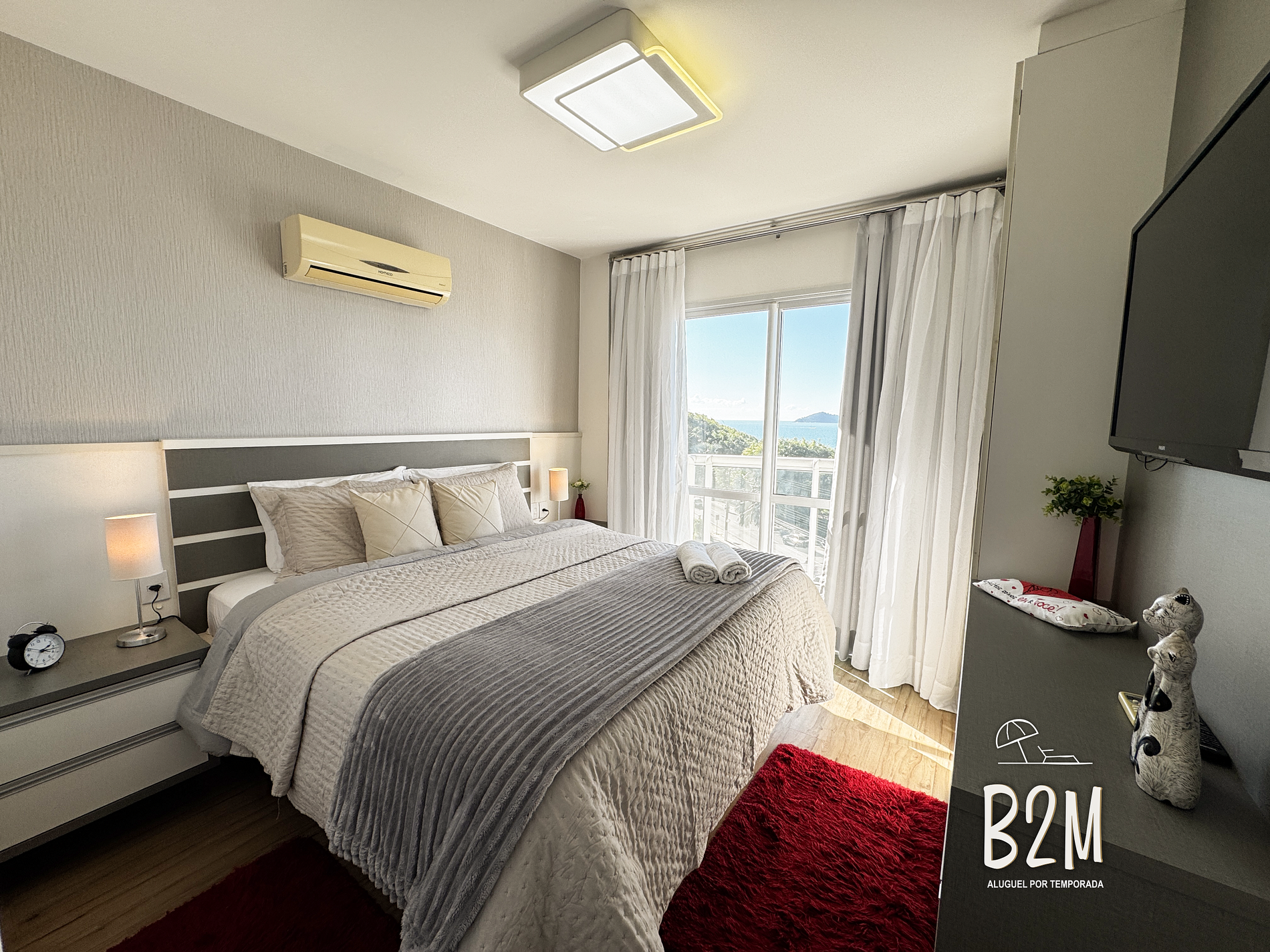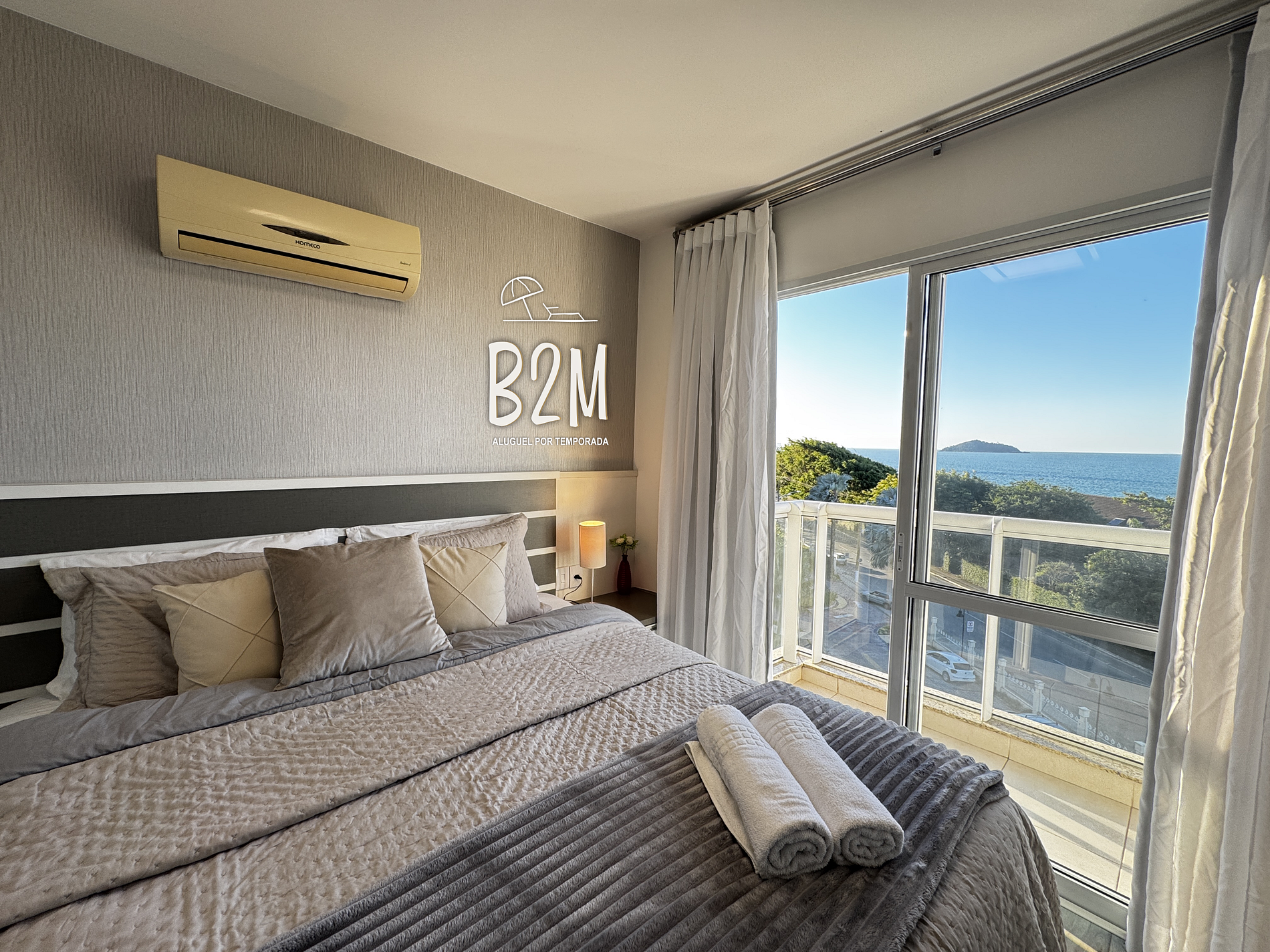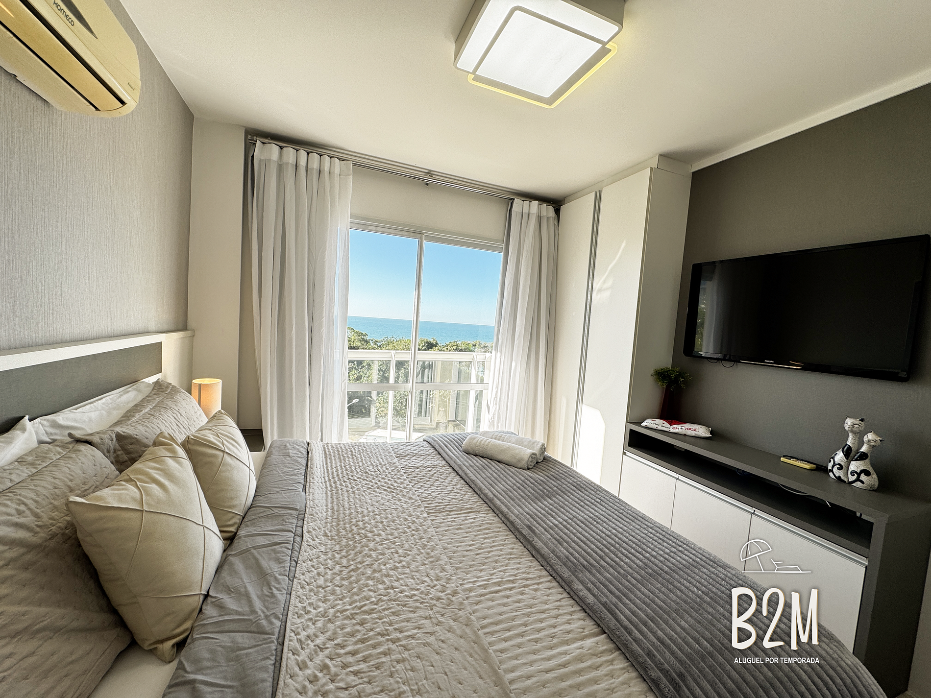 janela vista mar, 1 cama queen, ar condicionado, cômoda